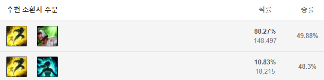 진은 원딜이기 때문에 점멸과 회복을 들어주는게 보통입니다. 또한 도주기가 없는 챔피언이기 때문에 상대방 챔피언들이 앨리스, 아리, 조이, 레오나 등 하드 CC기 스킬이 많은 경우 정화를 드는 경우도 종종 있습니다.