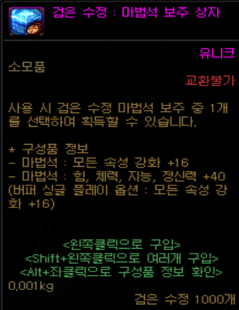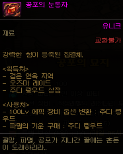 한번에 옵션을 최대 수치로 변환할 수도 있는데, 이때 필요한 것이 공포의 눈동자로 검은 연옥에서 낮은 확률로 드랍됩니다.