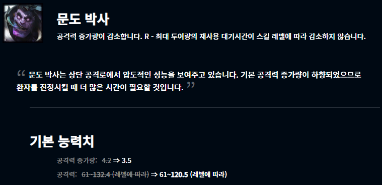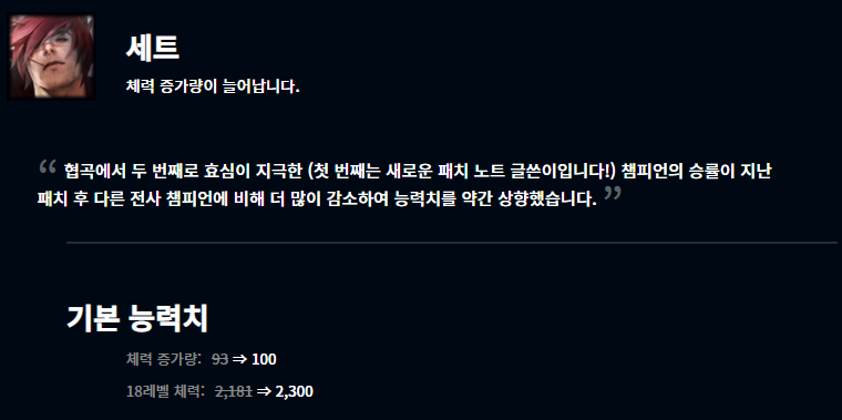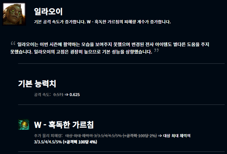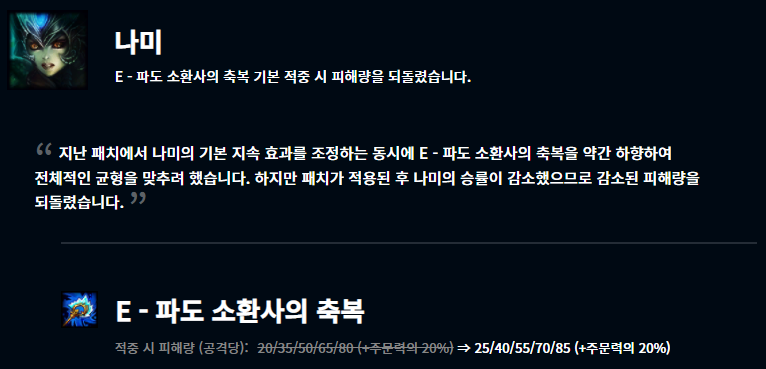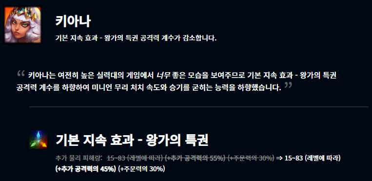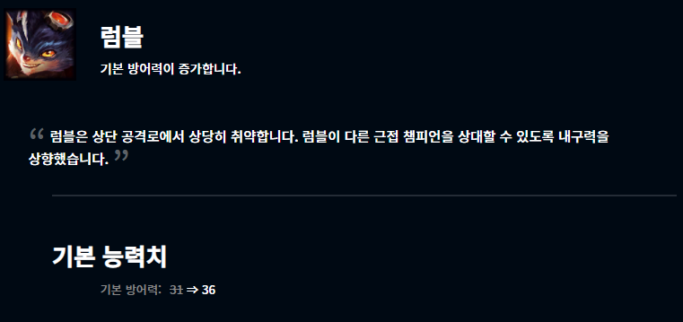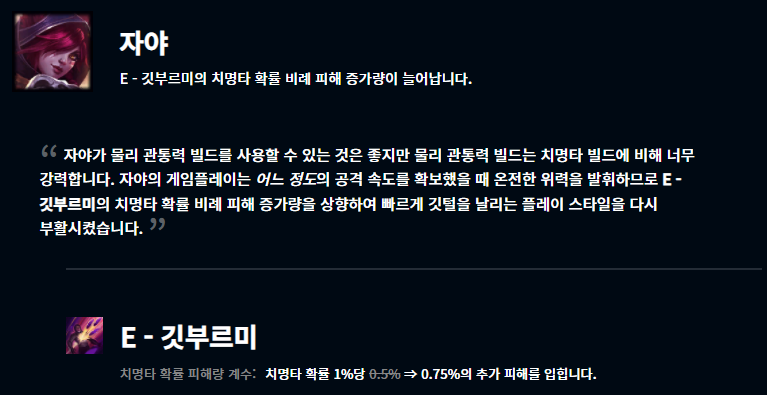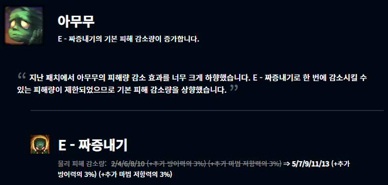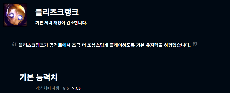 딱히 크게 변경된 부분은 없고 자잘한 수치 조정이 대부분인 버프입니다.