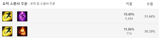 요릭은 다른 탑 챔피언들과 마찬가지로 점멸과 텔레포트를 들어줍니다. 장점인 스플릿을 하다가도 아군과 적군이 대치상황일때 도와주러 갈 수 있습니다.