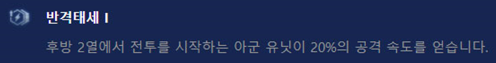 그 외에는 강화술사 시너지와 함께하면 좋은 불타는 향로, 응급처치 키트, 천상의 축복이 있고, 딜러진들이 후방에 많이 집중되어 있는 만큼 반격태세 시리즈도 나름 사용할만한 증강체입니다.