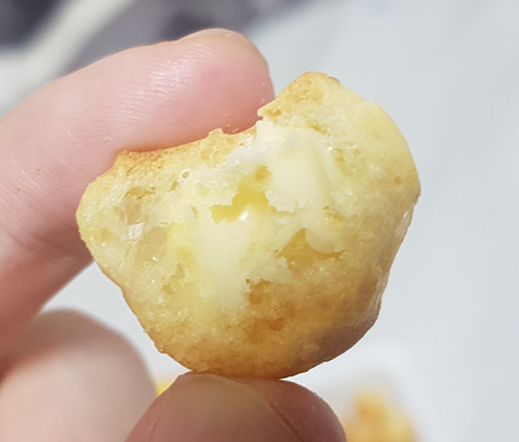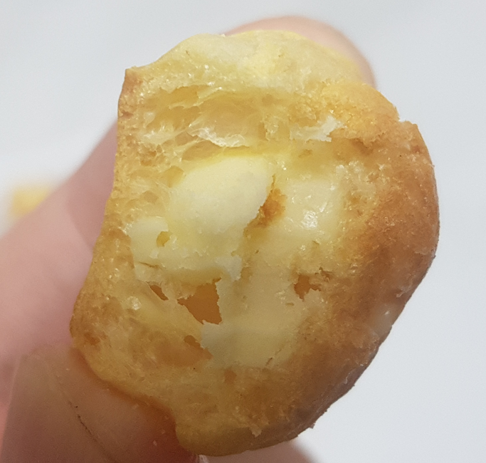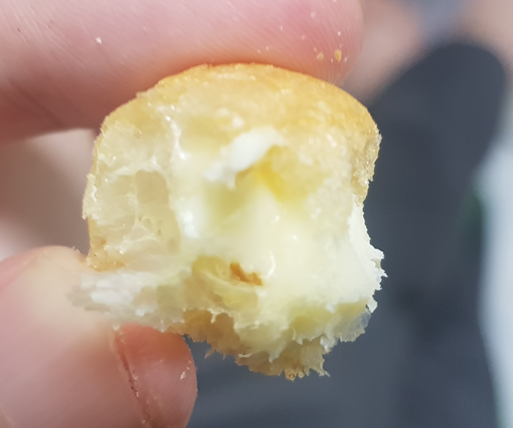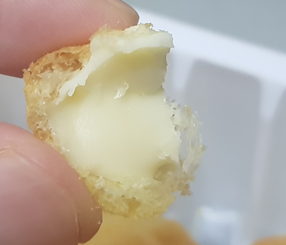 홈런볼을 자주 드셔본 사람은 알겠지만, 과자 속 안이 초콜릿으로 꽉 차 있는 것은 아닙니다. 체감상 3분의 1? 2?정도만 들어있는데 홈런볼 커스타드크림 역시 마찬가지였습니다. 맛은 상상했던 그대로의 맛이었습니다. 홈런볼 자체가 원래 슈 페스츄리에서 슈크림 대신 초콜릿을 넣은 작은 버전 정도인데, 홈런볼 커스타드크림은 진짜 미니 슈크림빵 느낌이였습니다.