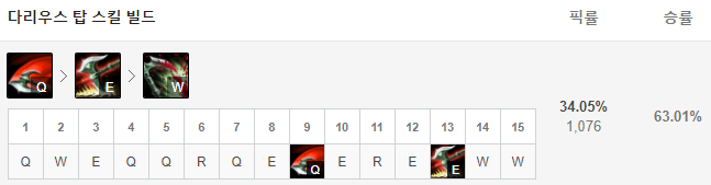 1레벨에는 Q스킬, 2레벨에는 W스킬, 3레벨에는 E스킬을 찍어주고 4레벨부터는 R-Q-E-W 순서로 스킬을 마스터해주면 됩니다.