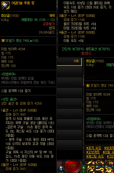 속도 면과 쿨타임 면을 둘 다 챙길 수 있는 무난하고 좋은, 다른 세팅에서도 자주 이용되는 반지입니다.
