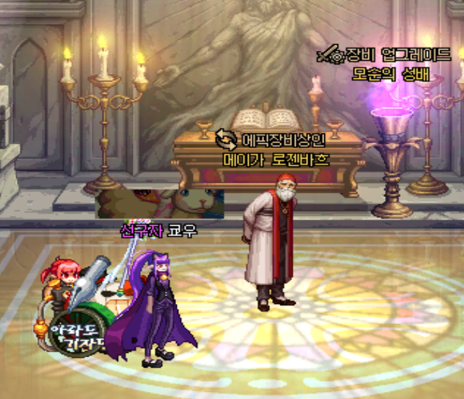 NPC 메이가 로젠바흐에게서 인도의 빛 3개로 교환불가 신화 장비 항아리를 구매할 수 있습니다. 당연하게도 랜덤한 신화 장비 한 종류가 나오는 항아리이며, 재료 아이템이 계정귀속이기 때문에 안쓰는 다른 캐릭터들에서 신화 장비 3개를 해체하면 계정귀속으로 신화 장비가 필요한 캐릭터에게 인도의 빛을 넘겨준 뒤 랜덤 신화 장비를 하나 얻을 수 있다는 것이죠.