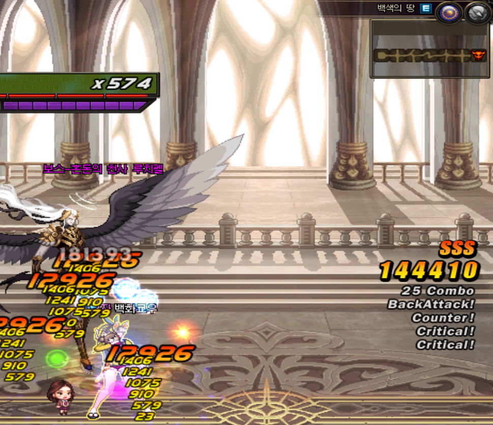 백색의 땅도 마찬가지로 가로로 직선으로 달리면 보스방에 도달할 수 있으며, 소모 피로도는 7입니다. 백색의 땅은 잡몹들로 구성되어 있는 방이 대부분에 네임드 하나, 그리고 보스로 이루어져 있는 던전입니다. 때문에 베리콜리스보다는 시간이 오래 걸리지만 이벤트 재료템이나 몬스터 드랍 골드가 더 풍부한 편이죠. 직으로 집 기준 풀 피로도를 사용한 경우 잡템을 다 판매했다는 가정 하에 70만 ~ 80만 골드를 획득 가능합니다.