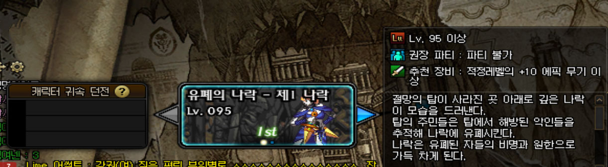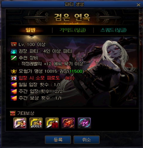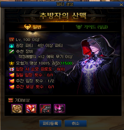 해당 던전은 레벨 95 이상 캐릭터가 입장 가능한 망자의 협곡 던전으로 레벨 100 이상이라면 마봉 둘둘이라도 굉장히 빠르게 목표를 달성할 수 있습니다. 캐릭터당 매일 하루 한 번만 입장 가능하며, 계정당 최대 3캐릭터까지 입장이 가능합니다.