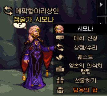 해당 던전에서 나온 전리품들은 바로 획득할 수 없으며, 매주 목요일 점검 후에 점술가 시모나 NPC - 탐욕의 함을 통해 획득이 가능합니다. 또 전부 획득할 수 있는것이 아니라 현혹의 탑 지하 3층, 5층, 7층을 클리어하면 사신의 열쇠를 각각 하나씩 받게 되어 최대 3종류의 아이템을 선택하여 획득할 수 있습니다. 낮은 확률이지만 유니크 카드를 얻으면 적어도 50만 골드를 버는 것이고, 레어 카드 역시 한 장당 10만 골드로 형성되어 있기 때문에 운빨이 있긴 하지만 걸리는 시간 대비 골드 수급은 꽤나 괜찮은 편이라고 생각됩니다.
