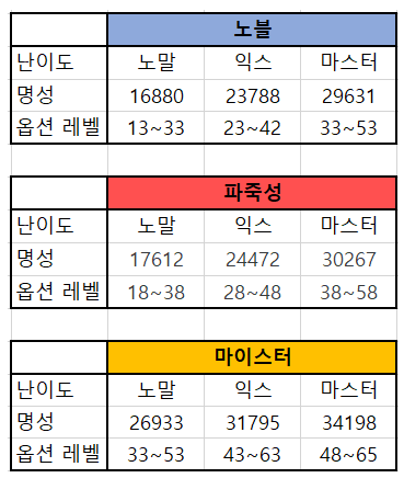 입장 명성컷은 노말이 26,933, 익스퍼트가 31.795, 마스터가 34,198로 상당히 높은 수준의 명성을 요구합니다. 이와 더불어 개발자 코멘트에 의하면 기존 상급던전들은 입장 가능 명성치가 되면 클이어에 무리없이 진행이 가능하도록 설계되었던 반면, 마이스터의 실험실부터 앞으로 업데이트 될 상급던전들은 도전 및 클리어하고싶은 콘텐츠가 되는 것을 목표로 하고 있다고 합니다. 그렇기 때문에 기존 상급 던전들보다 더 높은 난이도가 요구될 것이라 판단됩니다.