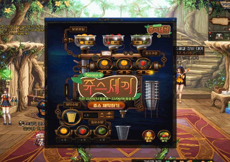 세리아방에 위치해있는 쥬스머신을 통해서 쥬스를 제작할 수 있습니다. 또 남는 과일들로 다른 과일을 구매할 수도 있으니 참고해주시면 되겠습니다.