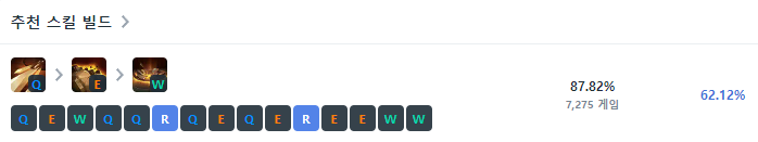1레벨에는 Q를 찍어주고, 2레벨에는 E, 3레벨에는 W를 찍어준 뒤 4레벨부터는 R-Q-E-W 순서로 스킬을 마스터해주시면 됩니다.