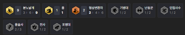 분노날개 자야덱은 분노날개(9), 용(1), 형상변환자(2)로 이루어져 있습니다. 여기에 나중에