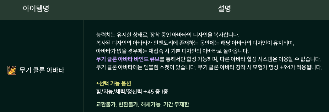 무기 클론 아바타 상자입니다. 엠블렘 소켓이 존재합니다.