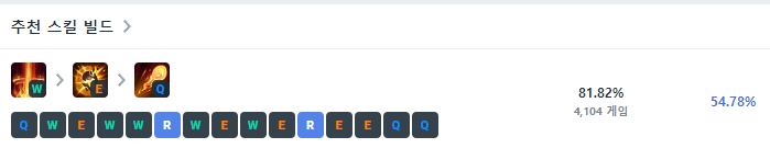 처음 3레벨 시작에서는 Q, W, E스킬을 각각 하나씩 찍어주고 이후 4레벨부터는 R-W-E-Q 순서로 스킬을 마스터해주면 됩니다. W를 상대에게 맞추고 화상 상태에 걸리면 거기에 E를 쓰는게 베스트지만, 사실상 W를 맞추기가 마냥 쉽지많은 않아서 거리가 안되면 상대방이 상대팀 미니언 근처에 있을 때 W를 미니언에게 맞춘 뒤 거기에 E를 사용하여 노려주는게 좋습니다. 또한 궁극기는 쿨타임이 은근히 짧기 때문에 적이 뭉쳐있는 각이 보이면 그때그때 사용해줍니다.