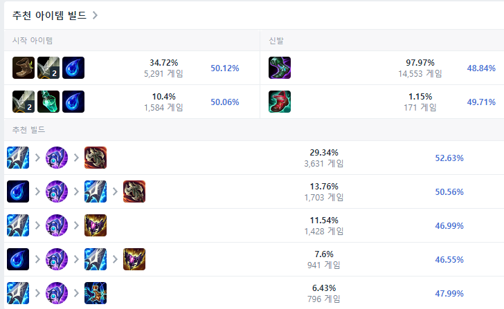 시작 아이템은 신발, 롱 소드 2개, 여신의 눈물을 구매해줍니다. 이후 첫 번째 코어 아이템으로 마나무네를 뽑고 마법사의 신발을 올려줍니다. 그 다음에는 루덴의 메아리를 올려준 뒤 AP에 집중할 것이라면 그림자 불꽃을, 생존이나 AD딜에 집중 할 것이라면 굶주린 히드라를 올려줍니다. 그 다음부터는 상황을 보고 유동적으로 템트리를 올려주면 됩니다.