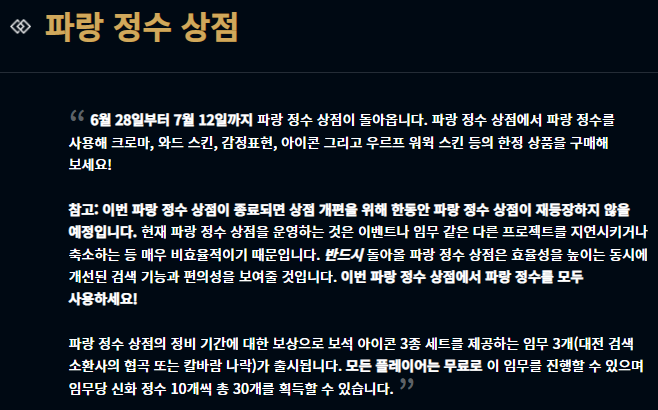 파랑 정수 상점이 돌아왔습니다.