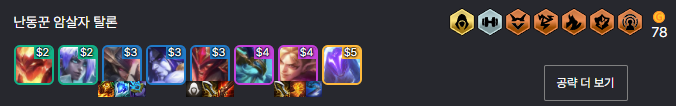 초반에는 세나, 세트, 케인으로 분노날개(3)을 가던지, 쉔을 먹었다면 스카너나 탐켄치를 이용해 난동꾼(2)를 챙기는 식으로 운영해줍니다. 그러면서 덱에 필요한 유닛들을 모으고 암살자를 추가해주면서 7레벨에 암살자(4), 난동꾼(4)를 맞춰주면 됩니다. 이후에는 8레벨을 찍어 파이크를 보던가, 아니면 3성작을 먼저 노려주던가 하면 되겠습니다.