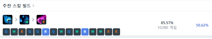 칼바람 아리는 처음 시작 3레벨에 Q스킬, W스킬, E스킬을 하나씩 찍어준 뒤 이후 4레벨부터는 R-Q-W-E 순서로 스킬을 마스터해주시면 됩니다. 4레벨부터 소환사의 협곡 미드 아리와 동일한 스킬 빌드입니다.