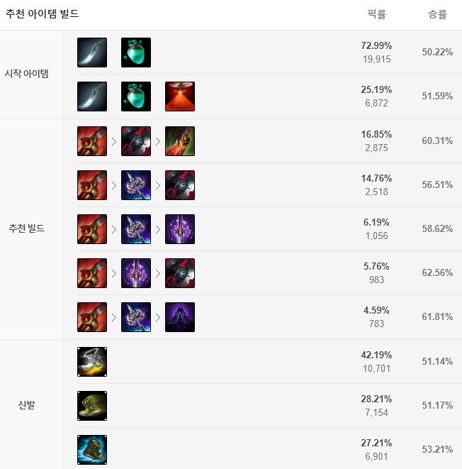 첫 아이템으로 정글템 용사를 올리며 그 후 칠흙의 양날도끼, 죽음의 무도 아이템을 띄우는게 제일 대표적입니다. 이렇게 템이 나오면 그레이브즈는 체력도 어느정도 되고, 방어력과 마법 저항력도 확보, 그리고 흡혈 능력을 이용해 지속적인 교전까지 가능해집니다. 이 템트리 이외에도 그레이브즈는 그림자 검도 효율이 좋은데 그림자 검을 뽑고 상대 정글 시야를 장악하면서 카정을 잘 활용해 상대 정글러의 성장을 늦추고 반면 본인의 성장은 높이는 방법이 있습니다.
