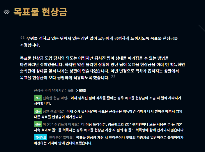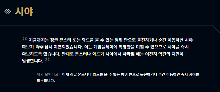 목표물 현상금 시스템이 개선되었고, 시야 부분에서 정글 몬스터나 와드를 볼 수 있는 범위 안으로 돌진, 순간이동하면 즉시 시야를 확보하도록 변경됩니다.