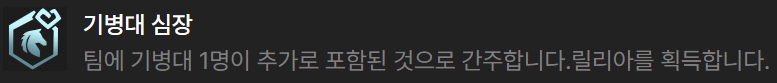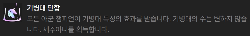 전투 관련 증강체들은 무난하며 기병대 특성을 늘릴 수 있는 증강체가 제일 좋습니다. 그 다음으로는 상점 관련 증강체를 선택하여 더 빠르게 릴리아 3성작을 완성할 수 있게끔 해주거나 기병대 관련 증강체를 뽑아 릴리아를 강화시켜주는게 좋습니다.