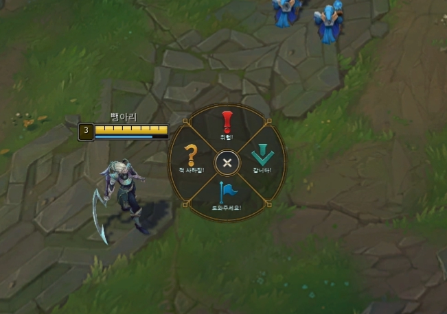 먼저 롤 핑은 단순한 핑과 신호로 나눌 수 있습니다. 단순한 핑은 생존, 와드, 아이템, 스펠 등이고 신호의 경우 컨트롤을 누른 상태에서 마우스를 움직이면 저렇게 나타나며, 신호의 경우 소리까지 납니다.