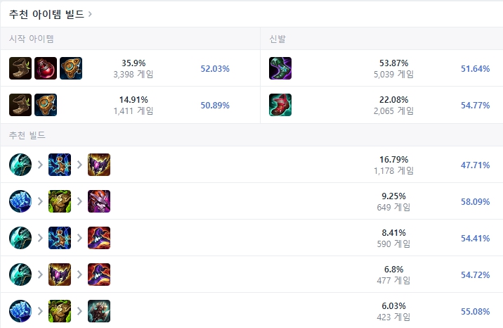 처음 시작은 신발과 포션 하나, 마법공학 교류 발전기를 올려줍니다. 이후 두첫 번째 코어 아이템으로 밤의 수확자를 올리고 마관신을 올려줍니다. 이후에는 쉬바나가 변신하고 쏘는 E스킬의 사정거리가 길고 맞추기도 그렇게 어려운 편이 아니기에 지평선의 초점을 올려줍니다. 마지막으로 상황을 보고 상대팀에 마법 저항력 아이템이 많으면 그림자 불꽃, 그냥 딜을 무식하게 올리고 싶으면 라바돈의 죽음 모자, 암살자들이 너무 싫다면 존야의 모래시계 등 유동적으로 올려주면 됩니다.