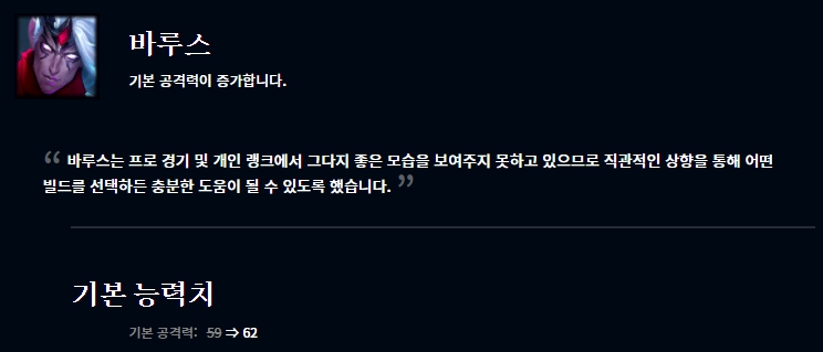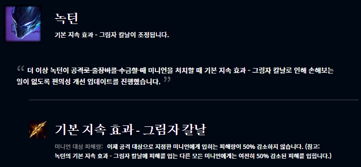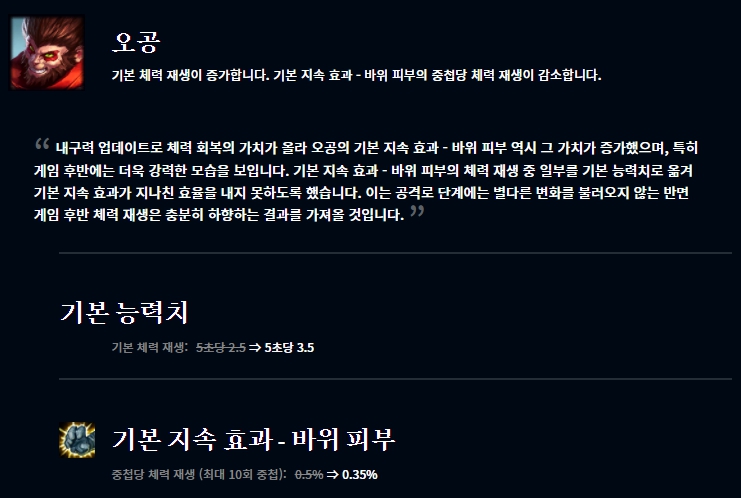 그 외 변경된 챔피언은 아트록스, 갱플랭크, 잔나, 케인, 오공입니다. 버프라고 봐야 할지, 너프라고 봐야 할지는 아직 지켜봐야 할 것 같습니다.