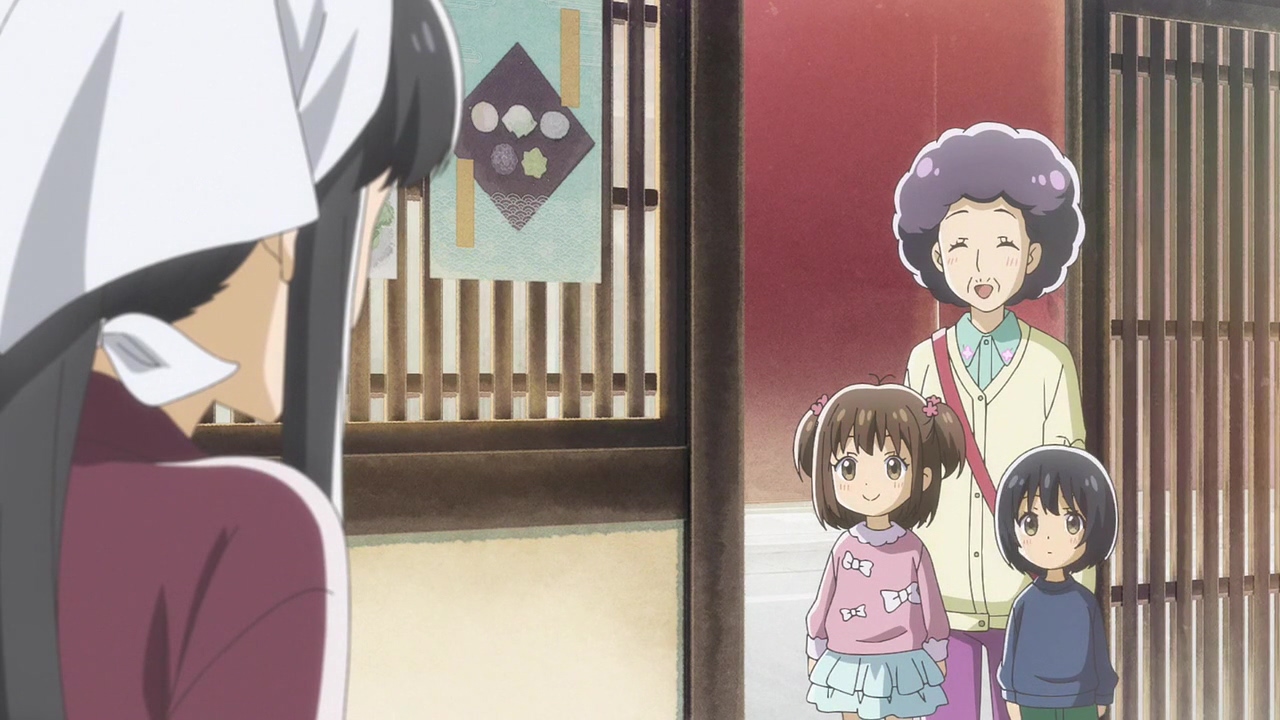 그러다가 역 앞에서 만난 이츠카가 들어오고, 누구냐고 물어봅니다. 이츠카는 1년정도 전부터 더부살이를 하고 있다고 말하며, 나고무의 아버지는 "이 아이가 우리 집 후계자"라고 말하죠. 거기에 이츠카 역시 "도망이나 치는 지멋대로인 사람에겐 양보 못합니다"라며 나고무를 차가운 눈빛으로 쳐다봅니다. 뭐 대충 그러면서 벌어지는 화과자집 이야기라고 보면 되겠습니다.
