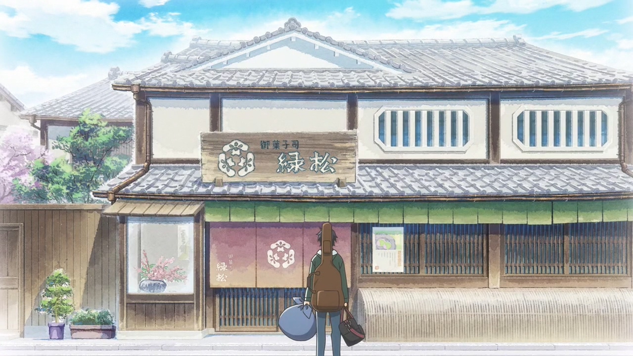일단 핵심 배경이 되는 화과자집 로쿠쇼가 나옵니다. 이어 역 앞에서 무언가를 기다리는 듯한 한 소녀가 나오죠.