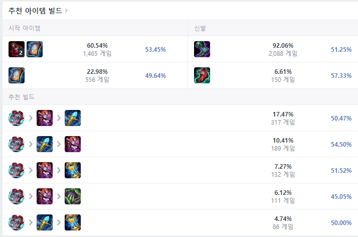 사라진 양피지와 포션 두 개로 시작하고 첫 코어 아이템으로 리안드리의 고뇌를 올립니다. 이후 마관신을 올리고 악마의 포옹과 라일라이의 수정홀을 띄워줍니다. 그 다음부터는 상황을 보고 유동적으로 모렐로노미콘, 존야의 모래시계, 공허의 지팡이, 그림자불꽃 등을 올려주시면 됩니다.