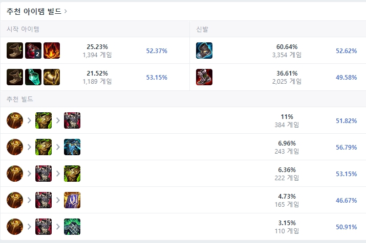 처음 시작은 보통 신발, 포션 두 개, 바미의 불씨를 올리거나 혹은 신발, 충전형 물약, 수호자의 뿔피리를 올립니다. 이후 첫 번째 코어 아이템으로 태양불꽃 방패를 올려주고 워모그까지는 띄워주는게 좋습니다. 이후 상황을 보며 가시갑옷, 대자연의 힘, 란두인의 방패, 정령의 형상 등 템트리를 유동적으로 올려주면 되겠습니다.