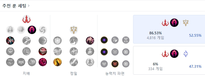 칼바람 나락 벡스의 메인 룬은 지배에서 어둠의 수확 룬을 사용합니다. 하위 룬으로는 비열한 한 방, 사냥의 증표, 궁극의 사냥꾼을 들어주고 보조룬으로는 정밀에서 침착과 최후의 일격을 들어줍니다. 능력치 파편은 적응형 능력치 두 개와 방어력을 들어주면 됩니다.