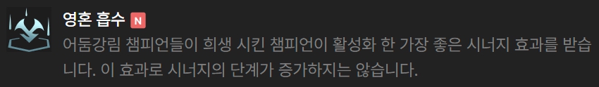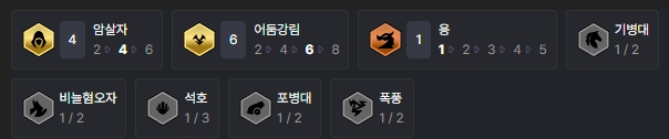 덱을 완성시키면 암살자(4), 어둠강림(6), 용(1) 시너지를 챙길 수 있습니다.