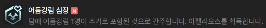 어둠강림과 관련된 증강체를 뽑아 아펠리오스 대신 넣어주거나 혹은 다이애나, 닐라에게 상징을 주는 것도 좋습니다. 그 외에 전투 관련 증강체나 암살자 관련 증강체도 잘 어울리며, 특히 추천드리는 증강체는 조준경 부착입니다.