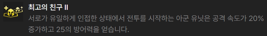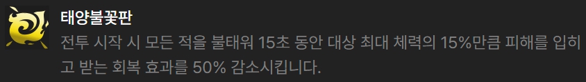 전투 관련 증강체는 웬만하면 대부분 덱에 무난한 증강체이고, 뒷라인의 힘을 강하게 해주는 조준경 시리즈나 태양불꽃망토나 모렐로노미콘이 없는 경우 유용한 태양불꽃판, 그 외에도 찬란한 아이템이나 오른 아이템 관련 증강체, 모든 챔피언들에게 수은의 효과를 입히는 신록의 장막, 포병대 관련 증강체도 좋습니다.