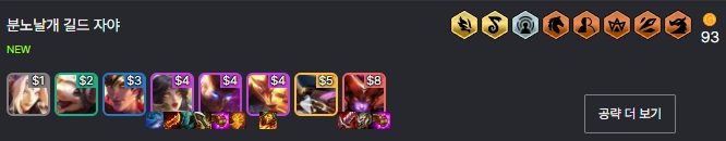 이번에 소개해드릴 롤토체스 시즌7.5덱은 바로 분노날개 길드 자야덱입니다. 길드 특성을 활용하여 자야, 제이스를 메인 딜러로 사용하는 덱입니다. 난이도가 조금 있는 덱이며 그렇다면 과연 분노날개 길드 자야덱은 어떤 챔피언들로 구성되어 있고, 어떤 특성들을 챙길 수 있는지, 증강체는 어떤게 잘 어울리는지, 아이템은 누구에게 무엇을 주는지, 간단한 운영법까지 함께 알아보도록 하겠습니다.