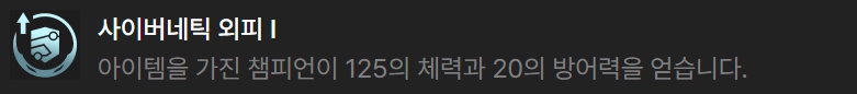 증강체는 전투 관련 증강체들은 무난한 편이며, 길드 관련 증강체가 제일 좋습니다. 또한 덱을 완성시키기 위해서는 고코스트 챔피언을 빨리 뽑아야 하기 때문에 레벨업 관련 증강체나, 상점 관련 증강체도 굉장히 잘 어울립니다.