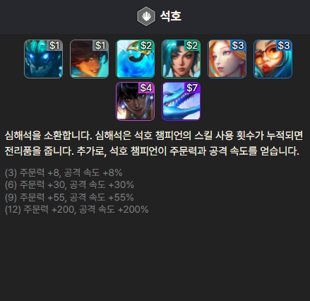 세주아니, 트위치, 라칸, 자야, 제이스, 헤카림, 바드, 쉬바나로 이루어져 있습니다. 9레벨을 찍어야 덱을 완성할 수 있습니다.