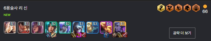 초반 빠르게 리신 2성을 달성해주는게 좋으며, 뒤집개나 특성 관련 증강체를 통해 용술사(8)을 완성시켜주면 더욱 좋습니다. 또한 원형의 원칙낫 시리즈를 고르면 리신이 발차기를 연속으로 하는 모습도 볼 수 있어서 좋습니다.