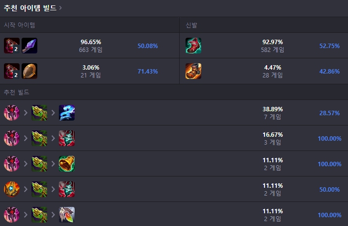 포션 두 개와 주문도둑검으로 시작합니다. 첫 번째 코어 아이템으로 제국의 명령을 띄운 뒤 쿨감신을 올리고 화학공학 부패기를 띄워줍니다. 이 이후에는 상황에 맞게 불타는 향로나 흐르는 물의 지팡이, 구원 등을 올려주시면 되겠습니다.