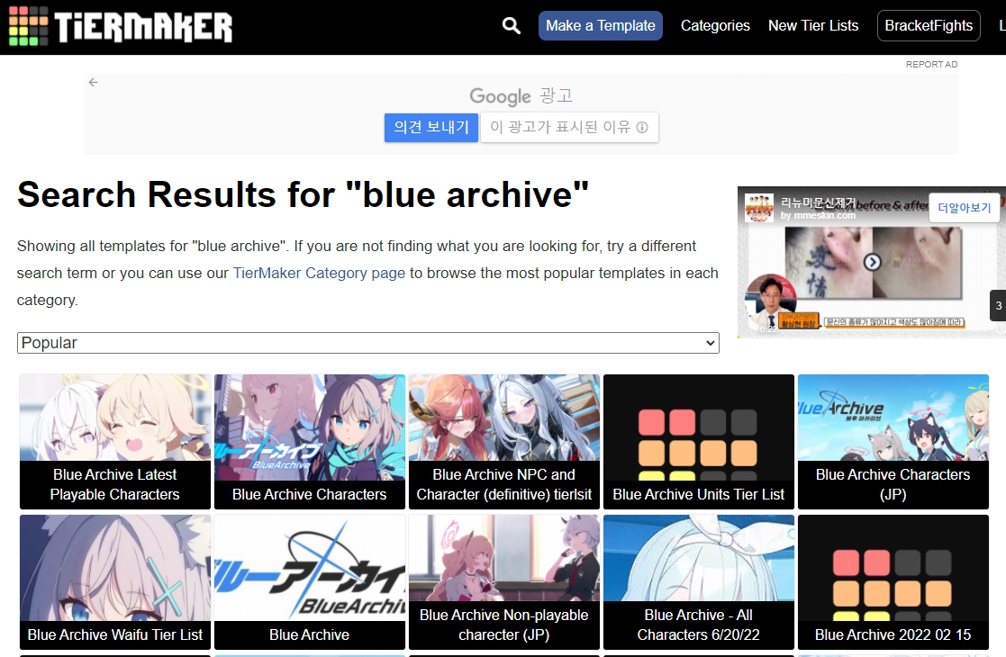 저는 블루 아카이브를 검색해보았는데요, 영어 사이트이기 때문에 영어로 검색을 해야 됩니다. 그러면 이미 다른 많은 사람들이 제작해놓은 템플릿들이 보입니다.