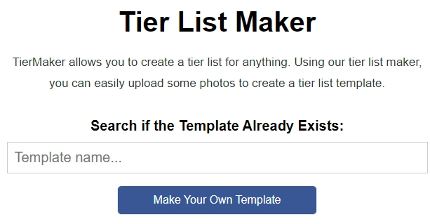 TierMaker allows you to create a tier list for anything in seconds. Quickly use an existing tier list template or upload images to create your own template.