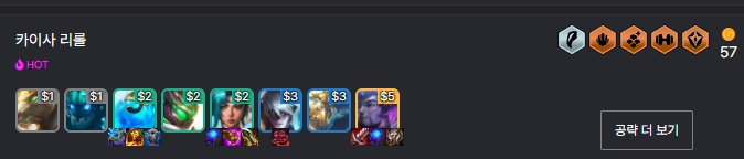 전투 관련 증강체가 거의 필수로 필요하며 그 외에는 카이사 3성작을 하기에 유리한 빠른 판단, 황금 티켓, 큰손, 교환의 장 등 상점 관련 증강체가 좋습니다.