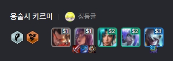 카르마는 뒷라인에 넣어야된다는 고정관념을 깨고 용술사 효과를 준 카르마를 앞배치시켜 맞으면서도 스킬을 계속 사용해 적 앞라인부터 차례로 깎아내리는 덱입니다. 몇 판 플레이해본 결과 순방하는데 좋으며 증강의 영향을 좀 크게 받습니다. 그러면 이번 포스팅은 여기서 마무리하도록 하고 다음번에는 또 다른 글로 다시 찾아오도록 하겠습니다. :)