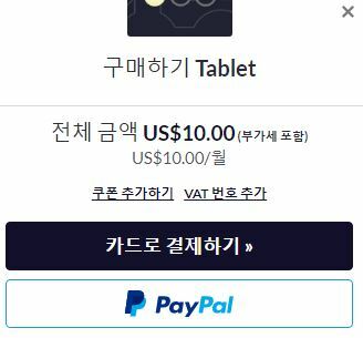예를 들어 Tablet 구독을 한다고 치면 한 달에 10$가 나가는데, 여기서 중요한 것은 PayPal이나 해외 결제가 가능한 카드가 필요하다는 것입니다. 또 10$라고 해도 환율은 계속 변하기 때문에 어느정도 참고해주시구요. 결제를 완료하면 Novel Ai 구독이 완료됩니다.