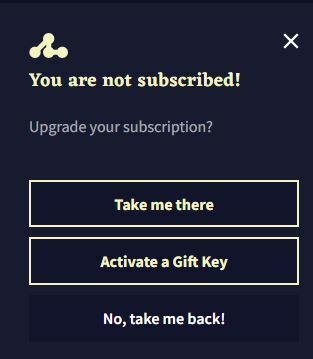 그러면 아직 구독을 하지 않았다는 창이 뜨며 Take me there(구독하기)와 Activate a Gift Key(선물키 활성), No, take me back(구독하지 않기) 이렇게 세 가지가 뜹니다. 첫 번째 Take me there을 눌러 Novel ai를 구독할 수 있습니다.