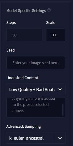 메모장 같이 생긴 'Enter your prompt here.' 부분에는 원하는 태그를 입력할 수 있습니다. 예를 들어 그려지는 캐릭터가 눈을 감은 상태면 좋겠으면 close eyes를 넣고, 대머리로 할 거면 bald, 하얀 머리로 하려면 white hair, 하얀 셔츠로 하려면 white shirt, 입을 벌린 상태면 open mouth 등 수 많은 태그가 있겠죠? 원하는 그런 부분들을 한글로 번역기 돌린 뒤 영어로 입력해주면 되고 태그는 여러개 사용할 수 있으니 콤마(,)로 구분해주면 됩니다.