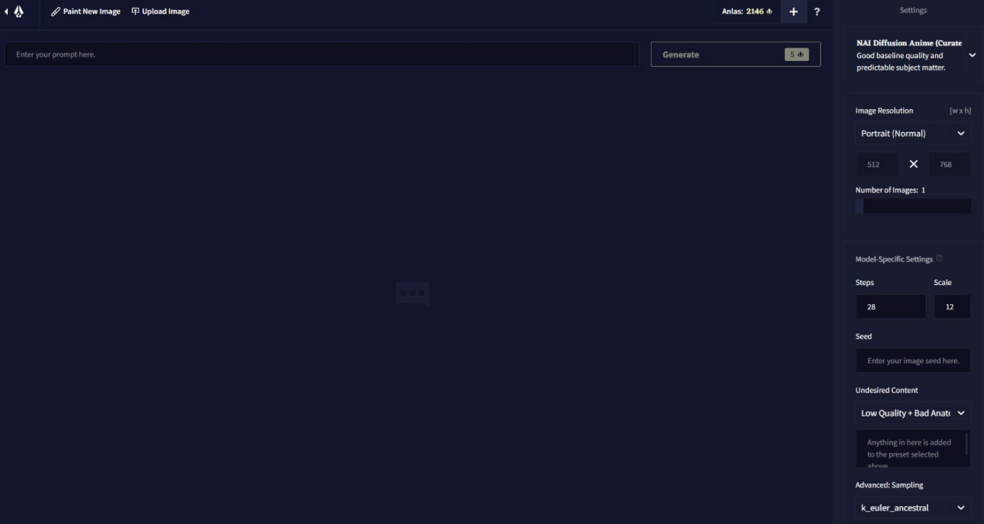 먼저 많은 분들이 크게 궁금해하시는데 노벨Ai는 무료가 아닌 유료 서비스입니다. 구독 서비스가 존재하는데 이 구독 서비스가 유료이며 구독하게 되면 매월 일정량의 'Anlas'라는 화폐를 제공받습니다. 이 화폐는 기본 등급 구독 기준으로 1,000 Anlas가 제공되며 보통 한 번 그림을 그리는 데 5개의 Anlas가 들게 됩니다.