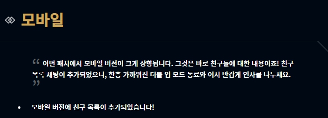 그 외 변경사항은 위와 같구요, 가장 큰 것은 모바일 버전에서도 친구목록 채팅이 가능해졌다는 점이네요.